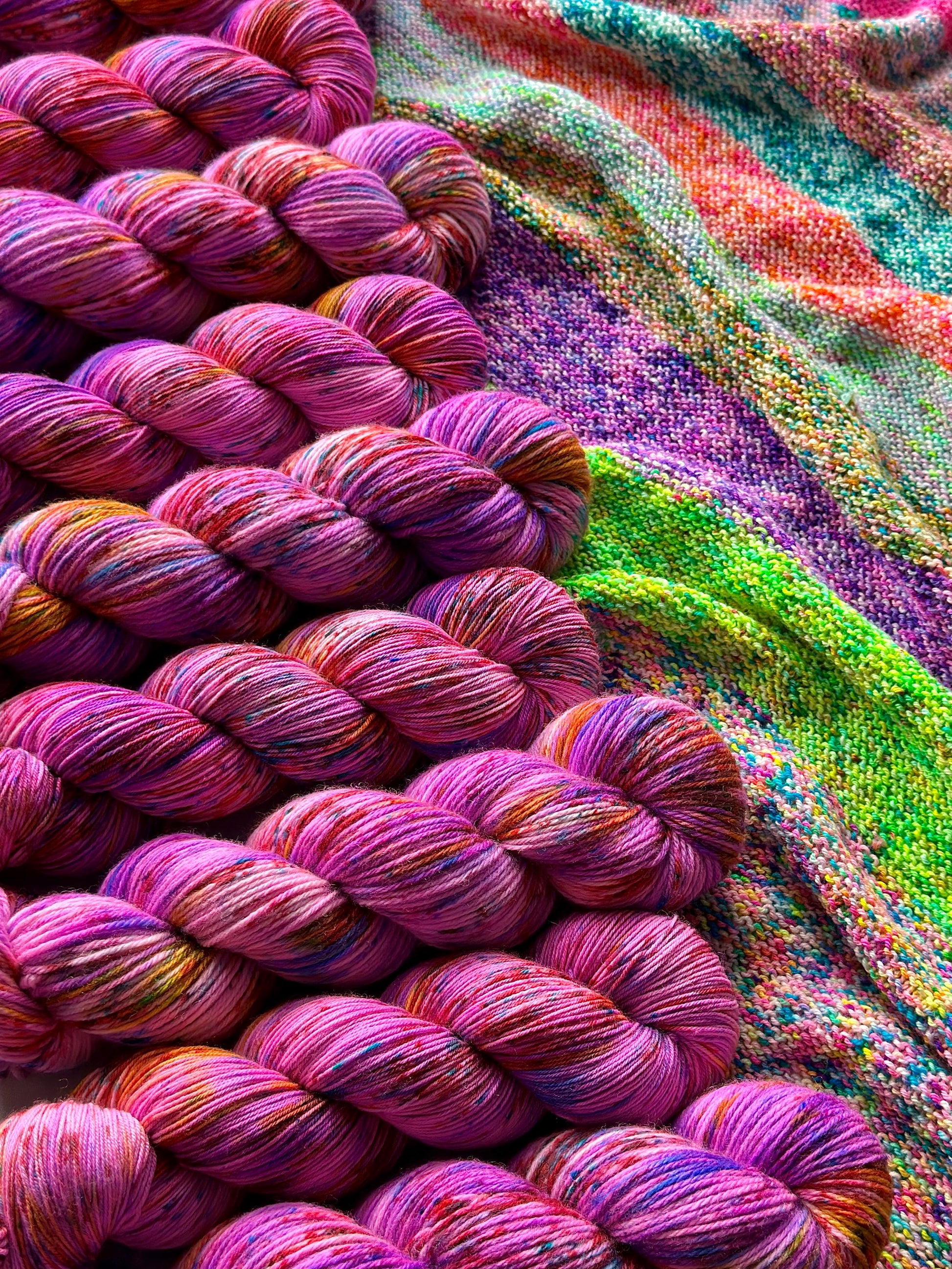 This yarn is hand painted in the Cotswolds using professional dyes and methods. Although the yarn is dyed in small batches, to help encourage similar colourways, no two skeins will be the same, meaning each skein will be a one of a kind creation. Therefore, I would recommend when using the same colourway throughout a larger project, to alternate between the skeins to help blend the yarns together and help prevent pooling.