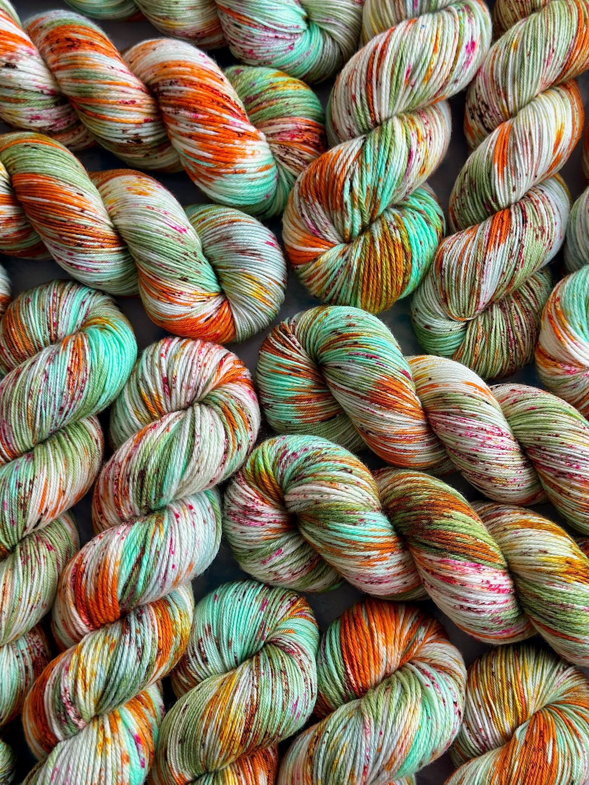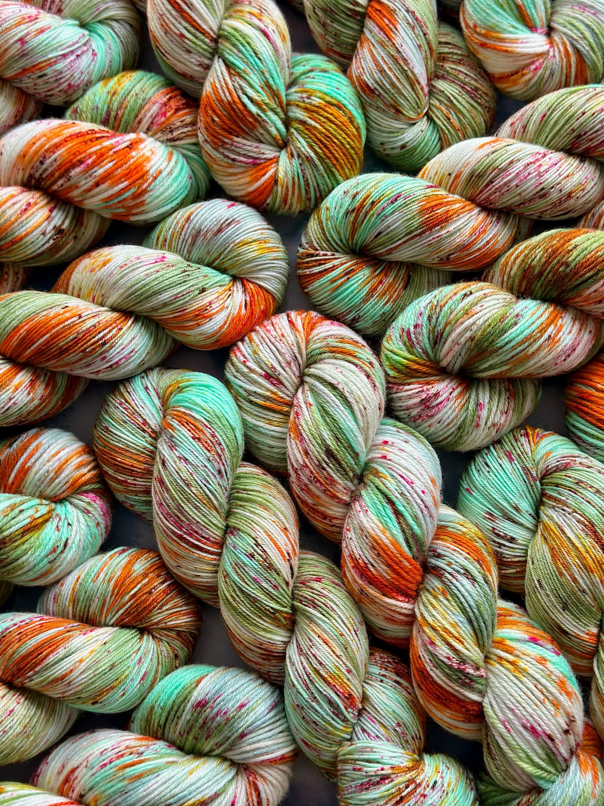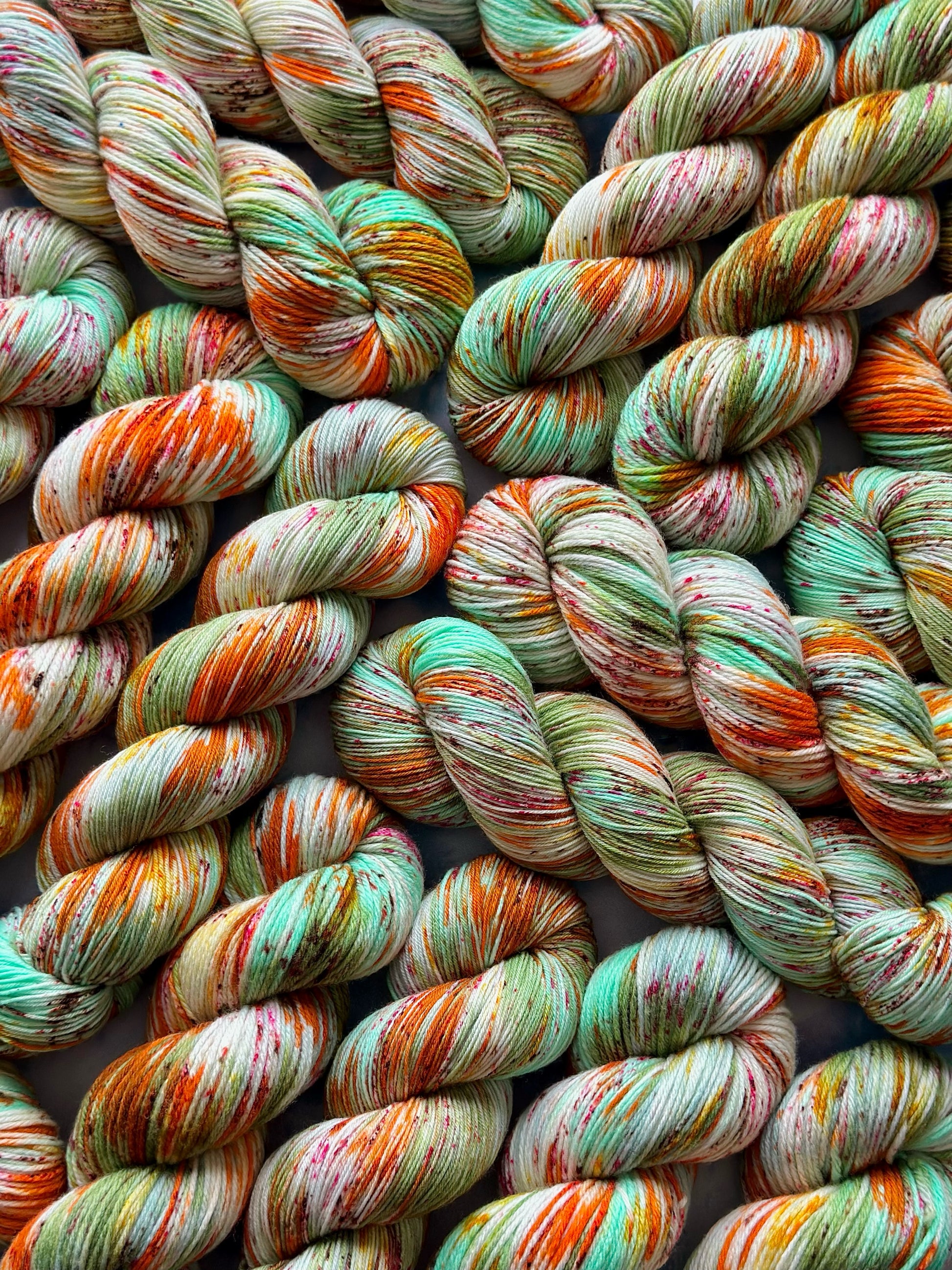 This yarn is hand painted in the Cotswolds using professional dyes and methods. Although the yarn is dyed in small batches, to help encourage similar colourways, no two skeins will be the same, meaning each skein will be a one of a kind creation. Therefore, I would recommend when using the same colourway throughout a larger project, to alternate between the skeins to help blend the yarns together and help prevent pooling.